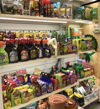 We stock a range of garden essentials; weed killers, plant feed, grass seeds, slug pellets, ant powder, bug and fungus treatments, fly killers, pots and saucers, secateurs, forks and trowels, string, watering aids, garden wire, etc